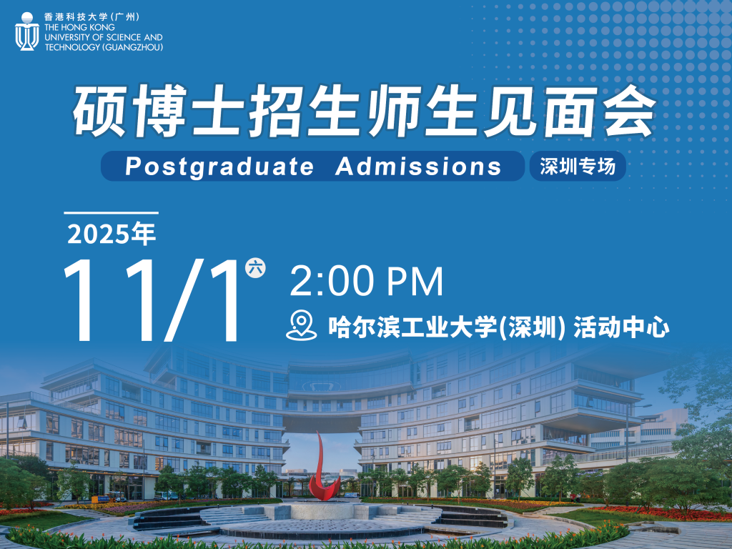 The Hong Kong University of Science and Technology (Guangzhou) is committed to equal opportunities. Admission to the University is based on merit. No candidate will be discriminated against in any way or shall receive less favorable treatment or consideration on the ground of disability unless it would cause unjustifiable hardship on the University to provide accommodation or under other circumstances permitted by law.